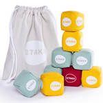 Zielen, werfen, Gegner nerven! Wie bei Boccia & Boule versuchen die Spieler, so nah wie möglich an den Ziel-STAKK zu werfen. Wer am nächsten dran ist, darf seinen Stein im Turm verbauen. Aber VORSICHT: der Turm kann jederzeit gestürzt werden.