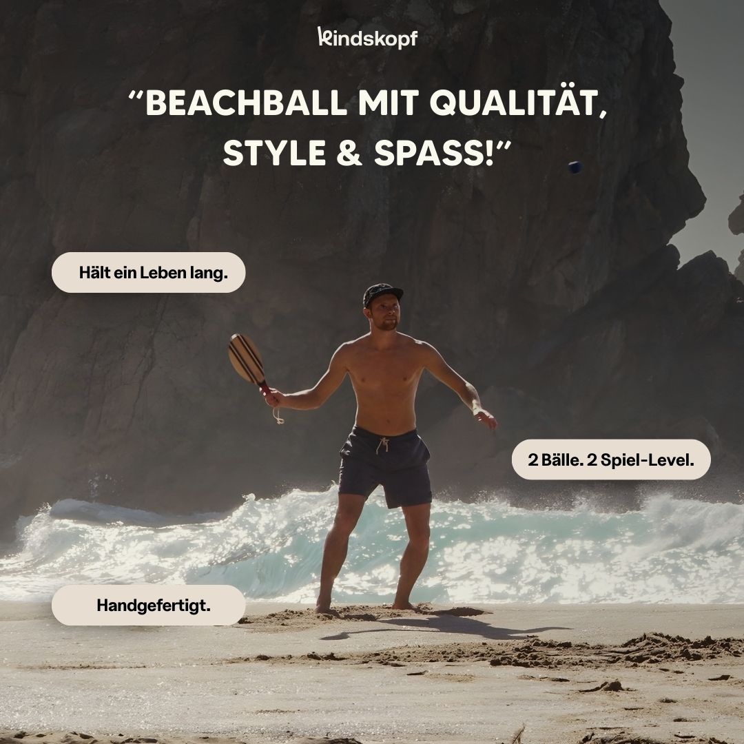 Mit dem Rio Classico Frescobol Schläger von kindskopf wird nicht nur gespieltl, sondern auch optisch ein Statement gesetzt. Jeder Schläger ist ein Unikat aus hochwertigem Hartholz und handgefertigt, was ihm eine individuelle und stilvolle Note verleiht. Genießen Sie nicht nur den Spielspaß, sondern ziehen Sie auch bewundernde Blicke auf sich, während Sie das Beachball-Spiel im Freien in vollen Zügen genießen.