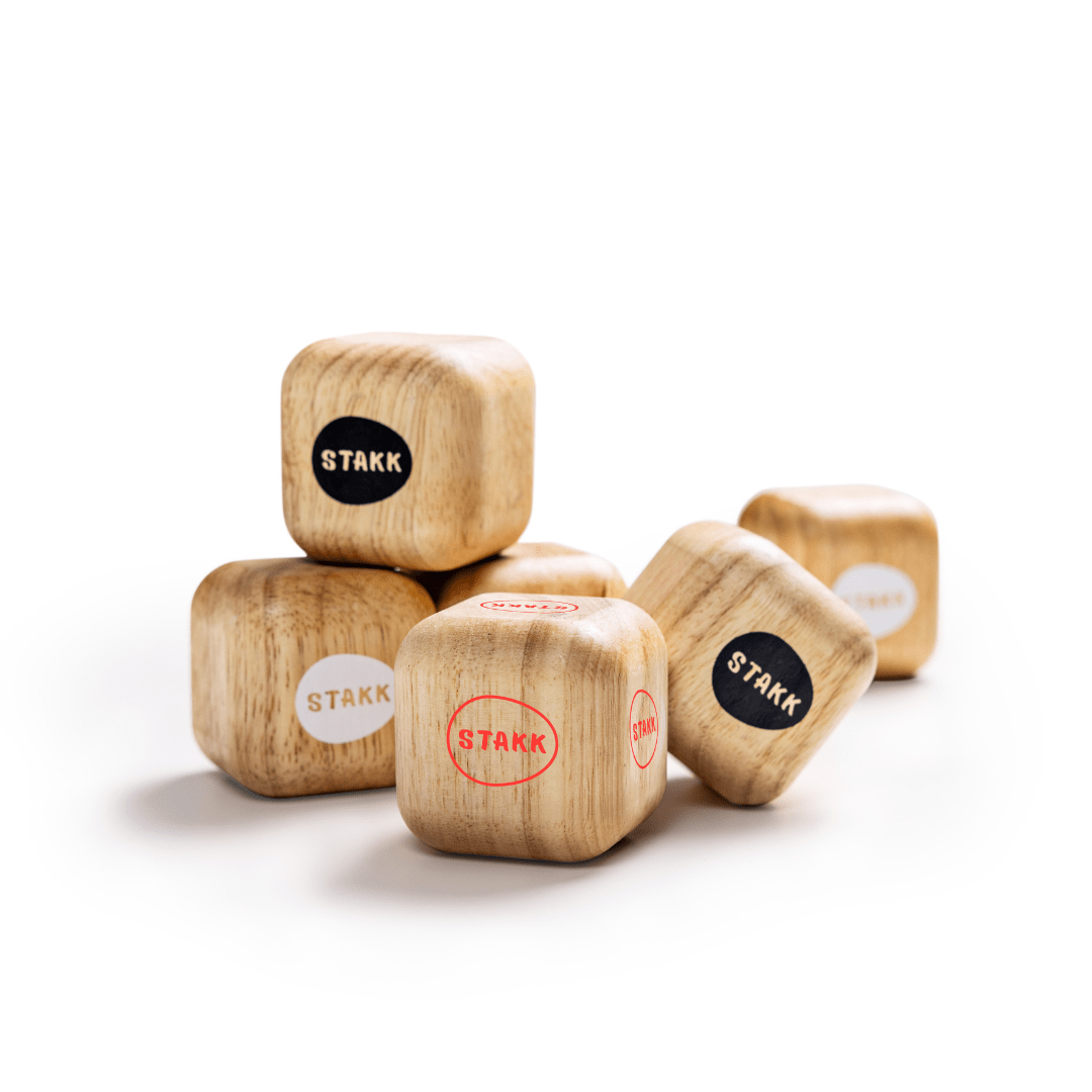 Bei STAKK werfen die Spieler abwechselnd ihre Würfel, um möglichst nahe an den Ziel-STAKK heranzukommen. Der Würfel, der am nächsten am Ziel-STAKK ist, wird auf den Ziel-STAKK gebaut. So entsteht nach und nach ein Turm. ABER ACHTUNG: mit strategischem Geschick und etwas Glück können die Spieler den Turm stürzen, was für ein mitreißendes und dynamisches Spielerlebnis sorgt.